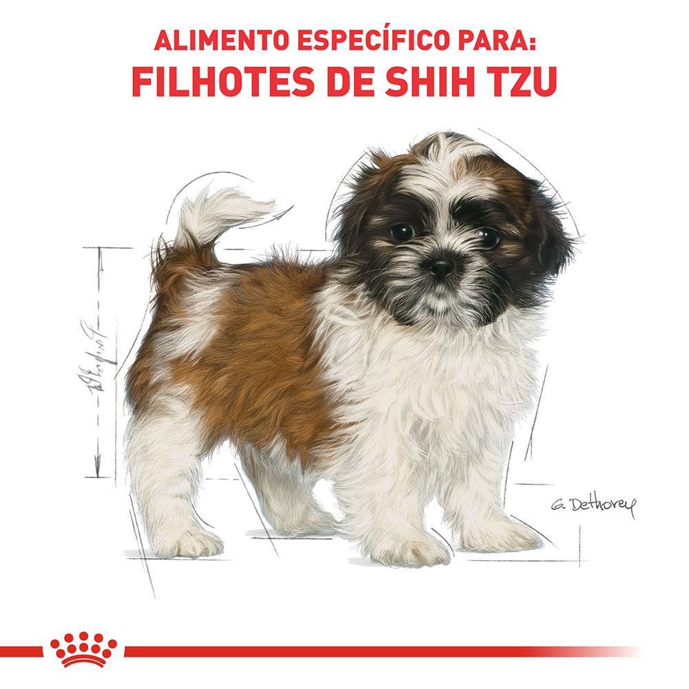 Ração seca de alta qualidade, formulada especificamente para filhotes da raça Shih Tzu, de 8 semanas até cerca de 10 meses de idade.